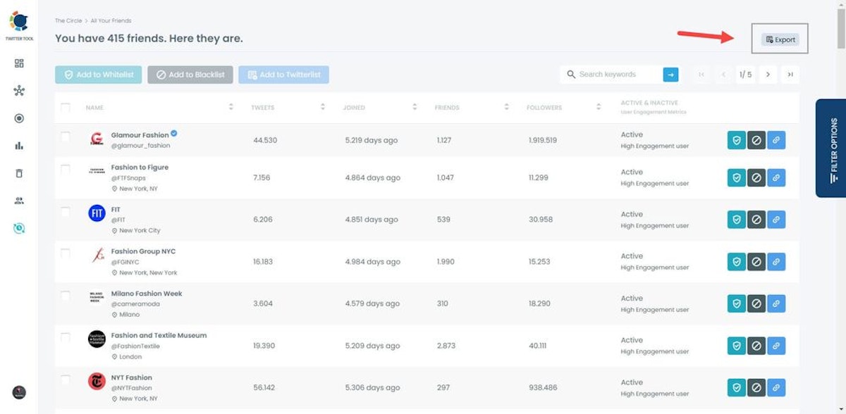 You can follow the procedures listed below to export the following list for Twitter. It is the easiest way to copy your Twitter following list!